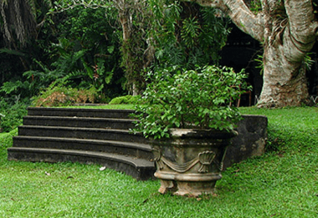 Сад окружен буйной тропической растительностью, в котором собрана коллекция из 160 видов тропических деревьев, множеством цветущих растений, включая редкую черную орхидею.