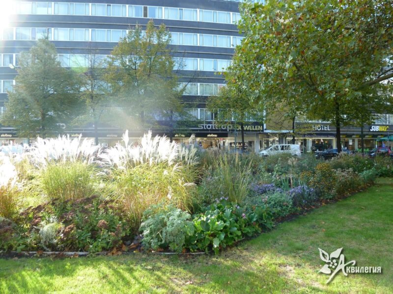 Следует обратить внимание, что в озеленении городов Германии очень широко применяются ухоженные газоны, нередко геометрических очертаний; иногда они чистые, а иногда в сочетании с композициями из цветов или декоративных кустарников.