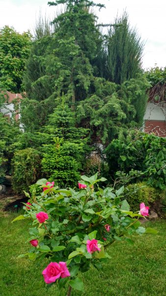 шесть лет участок (в основном, растения) никак не ухаживался, пришлось весь кустарник спилить ‘на пень’ (оставить побеги от земли 20-30см), что резко снизило декоративность сада на ближайшие 3-4 года. С деревьями оказалось сложнее, за ними вообще не было никакого ухода, что обрезкой не удалось полноценно достичь декоративности.